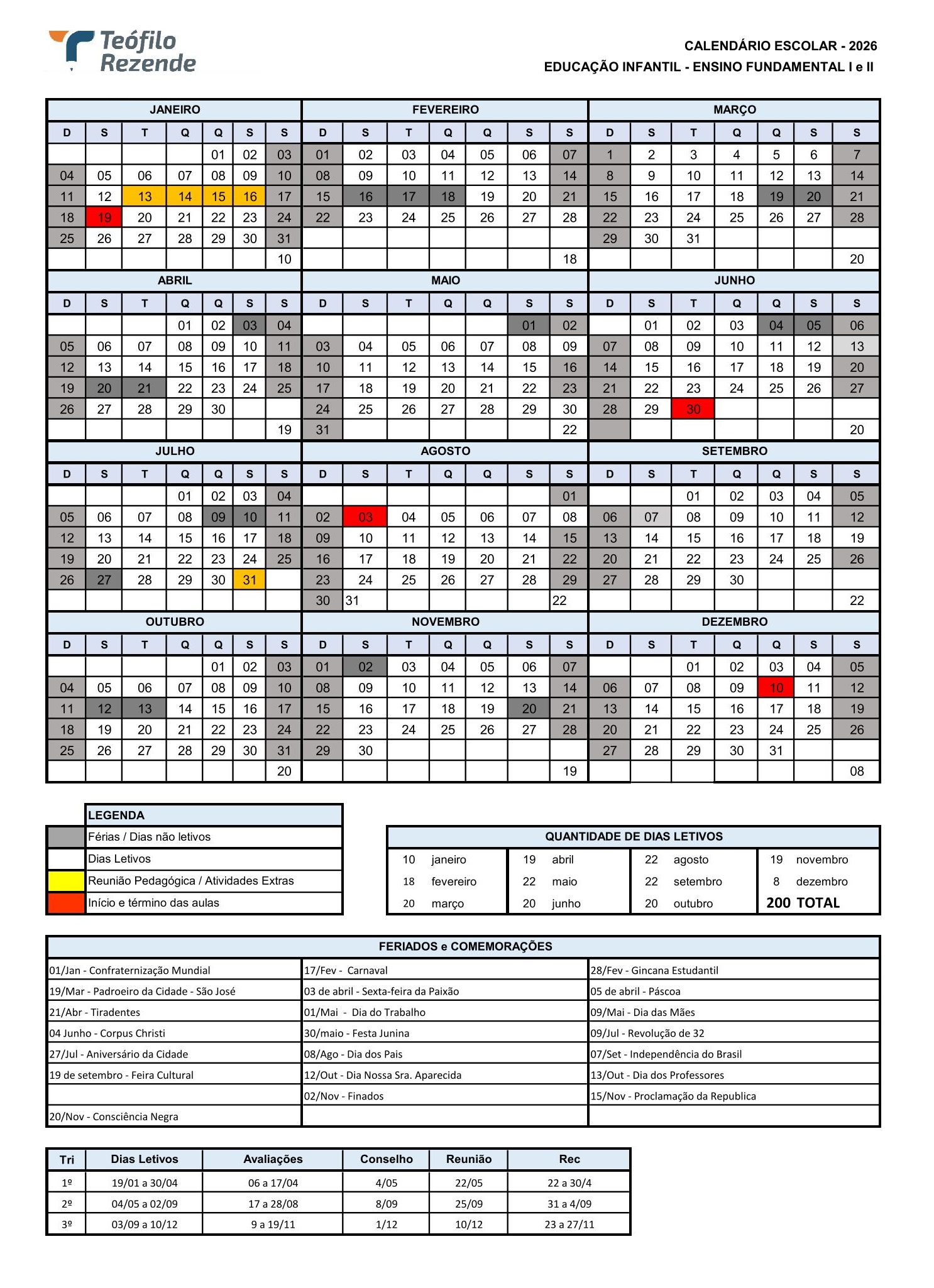 Disponibilizamos abaixo dois calendários para melhor acompanhamento da rotina escolar: